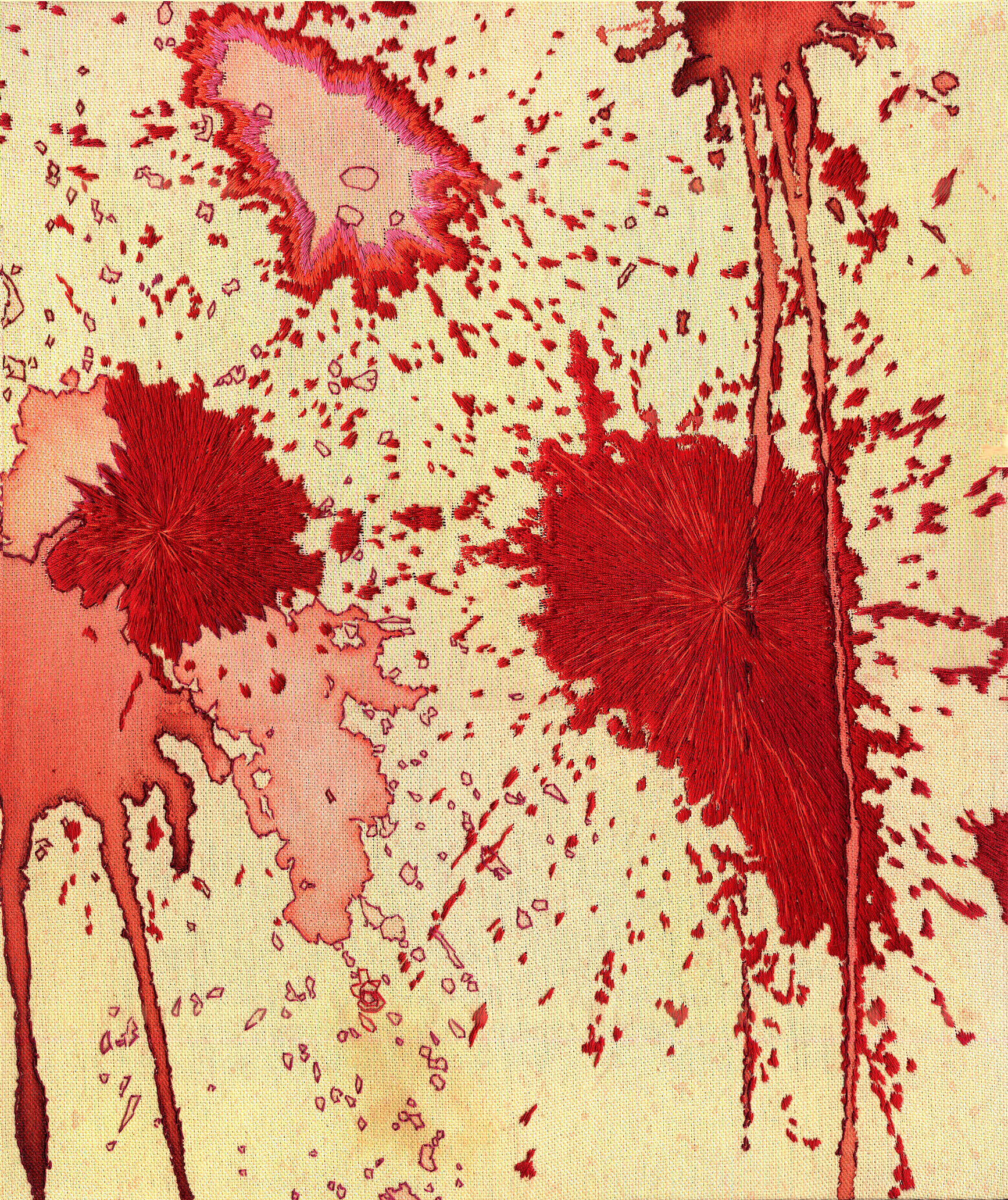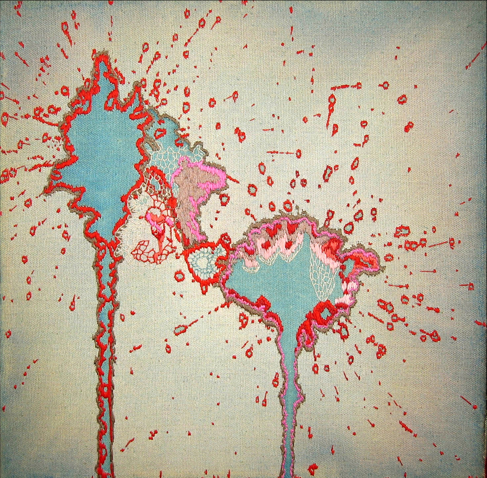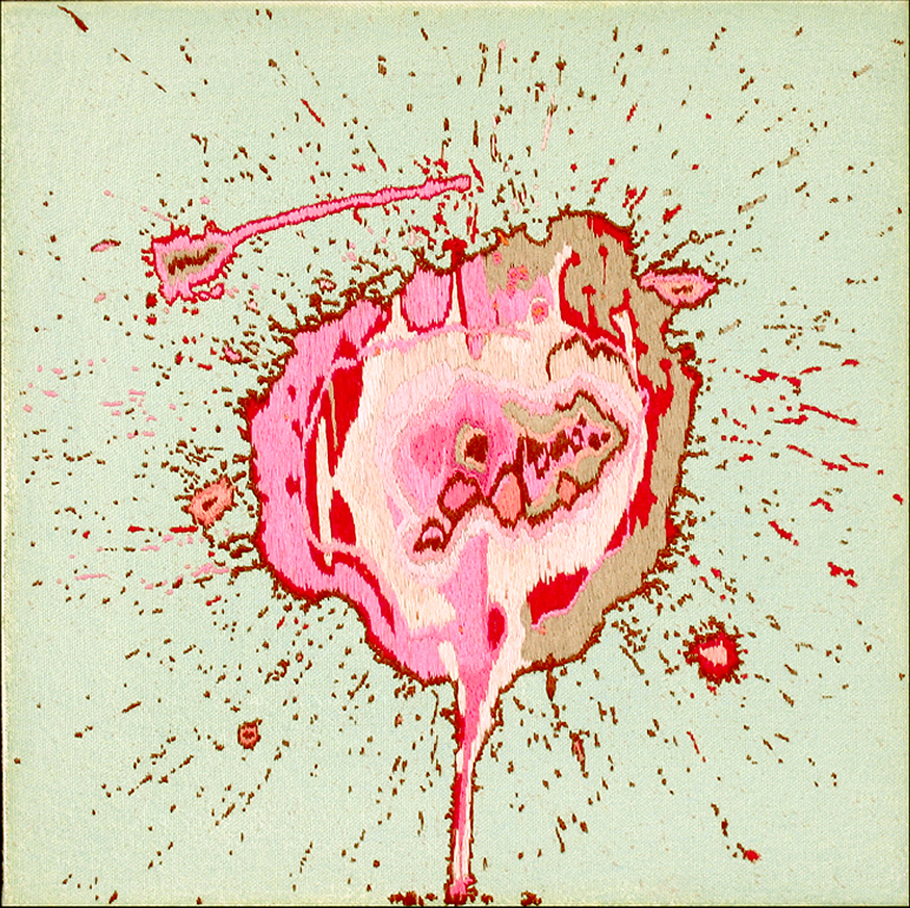 Candy Soup, 2003, thread on stained canvas, 14" x 12"